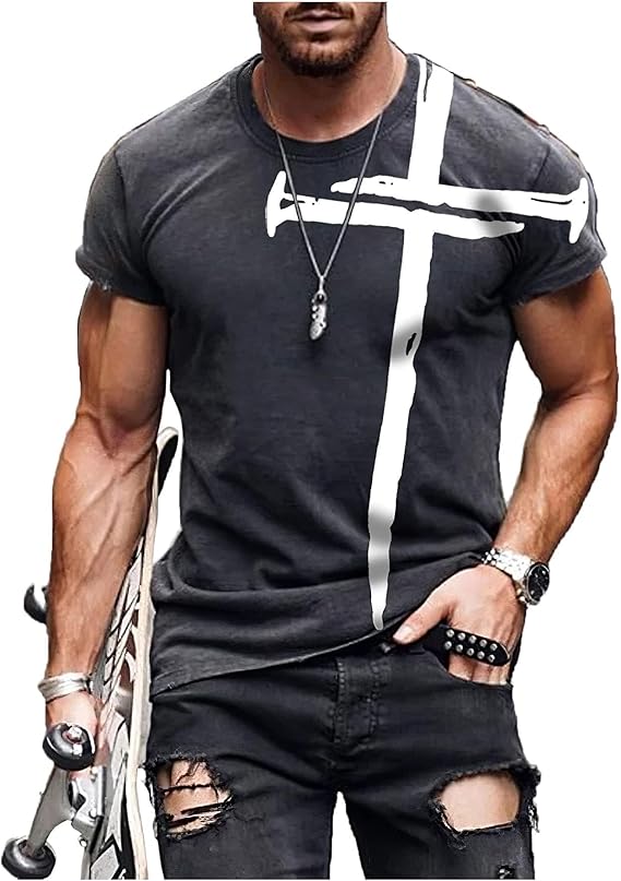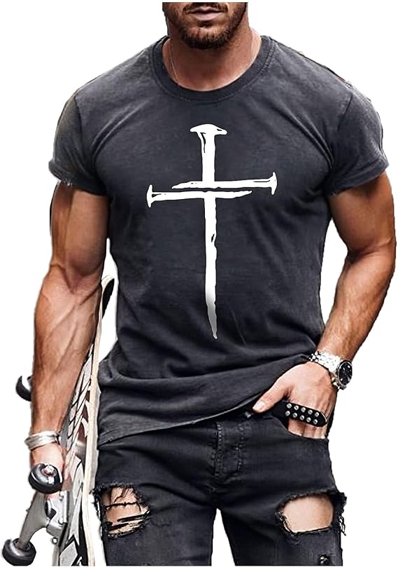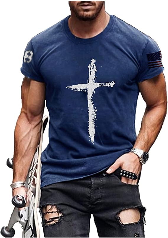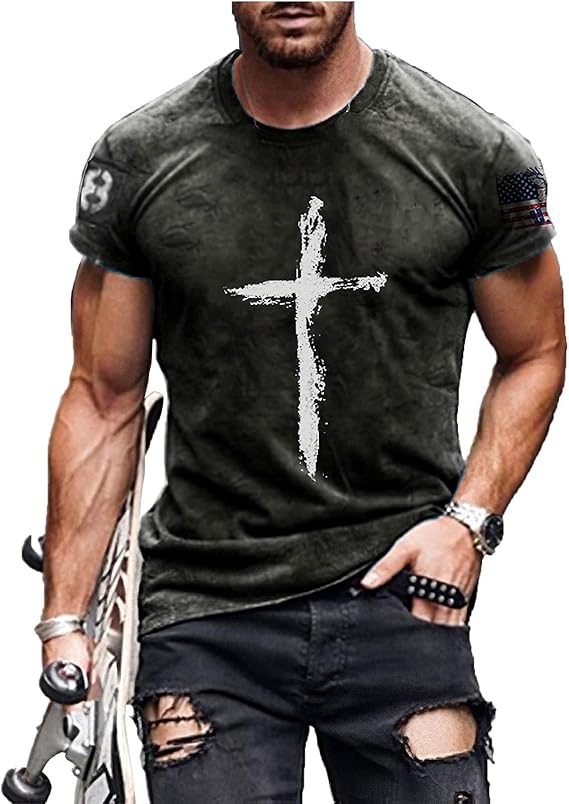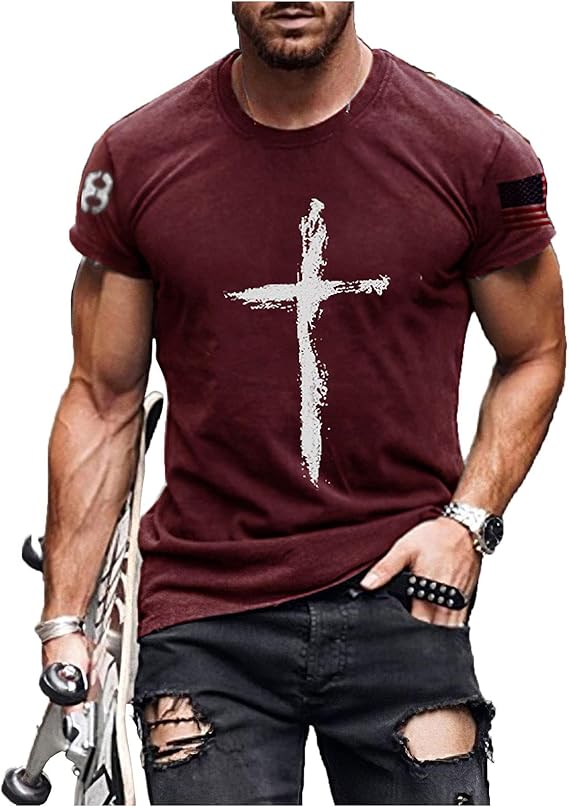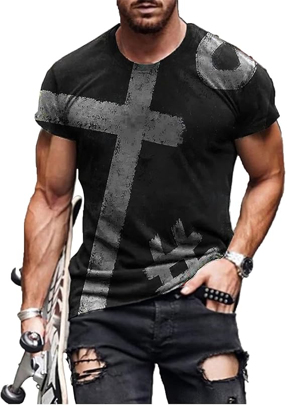 • Material fabric: Our short sleeve jesus cross print t shirts are made of 66% polyester and 34% cotton. Soft and skin-friendly, sweat-absorbing and breathable, anti-pilling.
