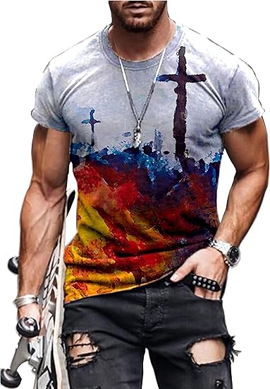 • men’s vintage oil painting faith jesus cross print casual t-shirts christ crewneck sweatshirt short sleeve shirts for men t shirts for men thanksgiving shirt.